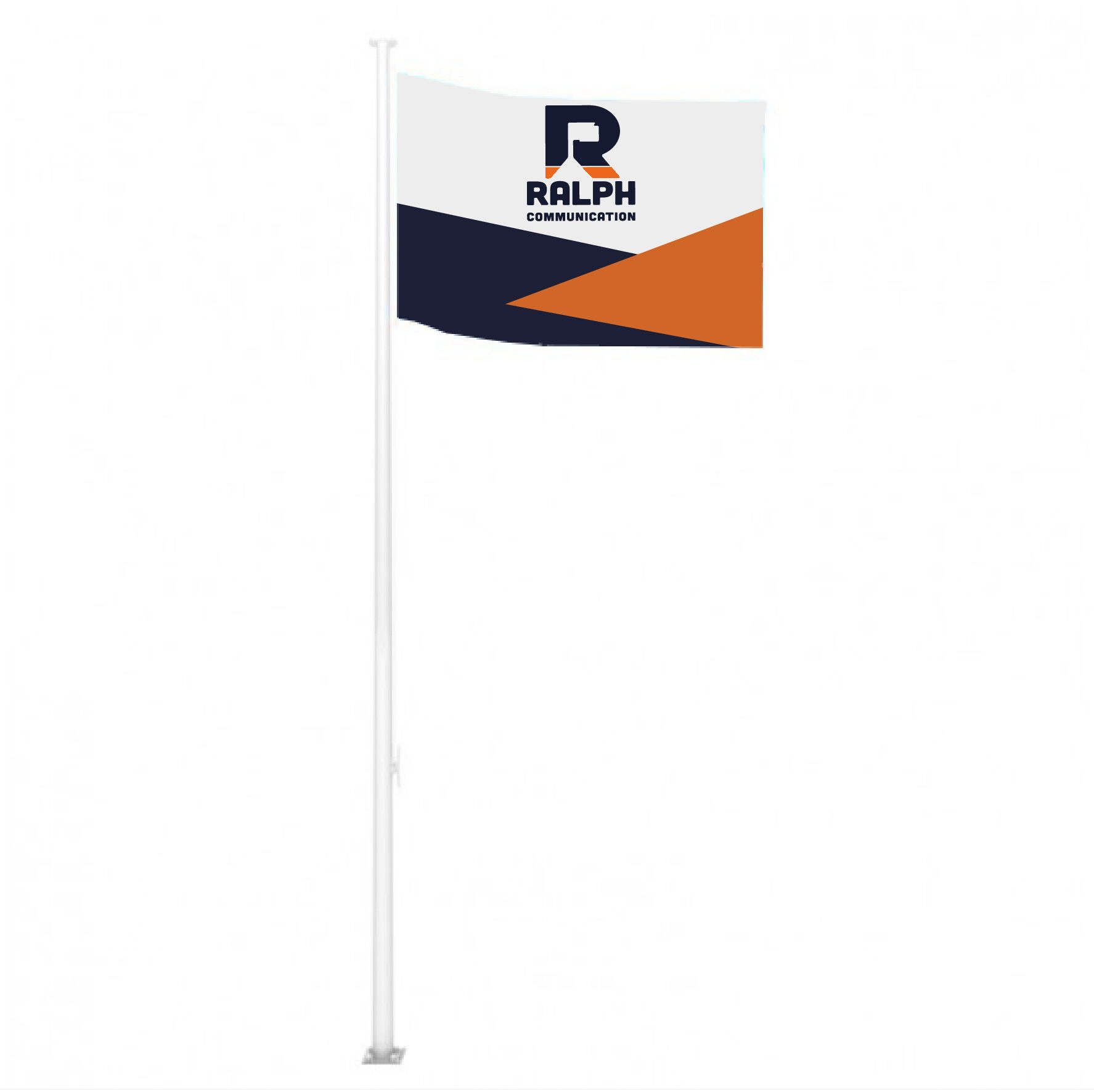 Ce pavillon publicitaire est un drapeau sur-mesure à hisser sur un mât.