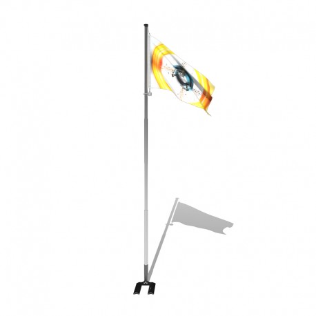 Mât téléscopique porte-drapeau à potence en aluminium brut.