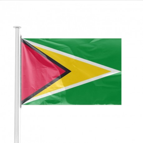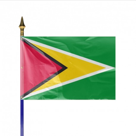 Drapeau et pavillon imprimé aux couleurs de GUYANA, produit adapté à un usage en intérieur et en extérieur.