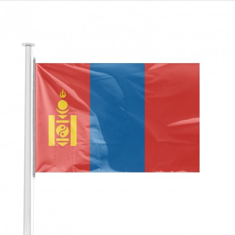 Drapeau et pavillon imprimé aux couleurs de la MONGOLIE, produit adapté à un usage en intérieur et en extérieur.